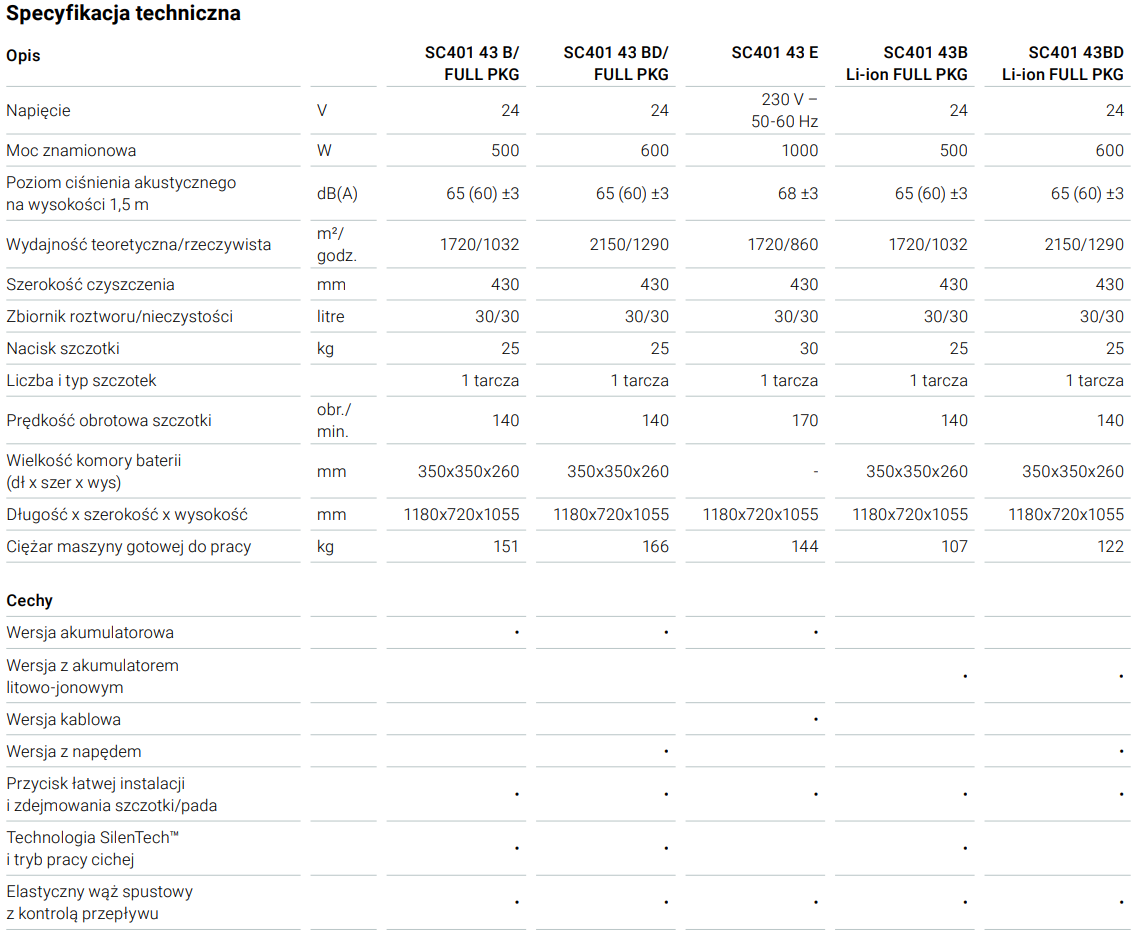 Urządzenie SC401 zaprojektowane i zbudowane przy zastosowaniu sprawdzonej technologii Nilfisk podniesie produktywność codziennych czynności w zakresie sprzątania w takich miejscach jak np. biura, sklepy, hotele, szkoły, szpitale, warsztaty itp. Wysoka i stała wydajność jest zapewniana przez dek szorujący o średnicy 43 cm wyposażony w szczotkę lub pad. Dzięki świetnej wydajności zbierania wody zapewnianej przez system zakrzywionej ssawy podłoga pozostaje całkowicie sucha, a pracę można kontynuować przez długi czas. Całkowicie naładowany akumulator umożliwia nieprzerwaną pracę nawet przez 4 godziny, a pojemnik roztworu zapewnia do 100 minut pracy bez konieczności uzupełniania.